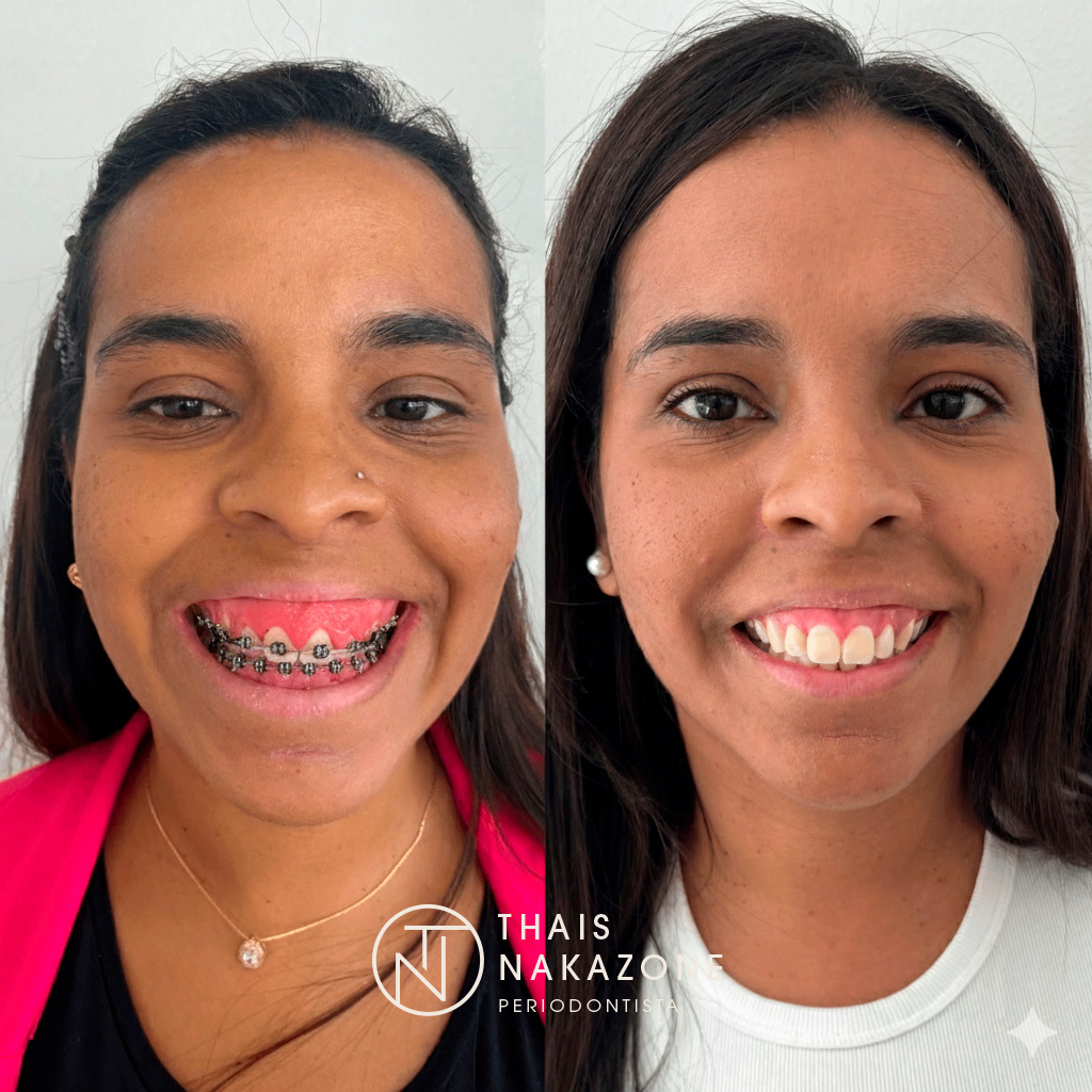 Já quando o objetivo é estético, o ideal é que a gengivoplastia seja feita após a retirada do aparelho, quando não haverá mais movimentações dentárias. Assim, conseguimos um contorno mais preciso e resultados mais duradouros.